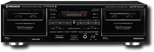 Dans mon salon, sur mon setup d’écoute, une platine milieu-haut de gamme Pioneer CT-w706 DR de 1997. Ce deck est compatible Dolby B, C et HX Pro comme mon TEAC a la différence que Pioneer a souhaité ajouter un peu de magie noire sous la forme de leur système Flex et leur traitement Numérique – Analogique – Numérique de 20 bits réduisant considérablement le bruit de fond des cassettes (en plus du Dolby). Le résultat ? Une qualité CD, tout simplement.
