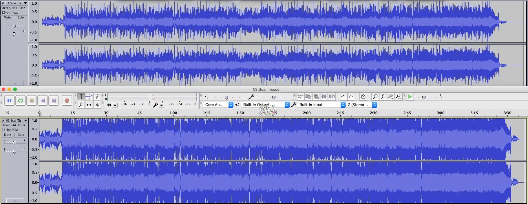 En haut, la version originale de “Scar Tissue” des Red Hot Chili Peppers, en bas, la version remastérisée des années 90 – Source : https://www.reddit.com/r/RedHotChiliPeppers/comments/38azud/after_downloading_the_remastered_californication/